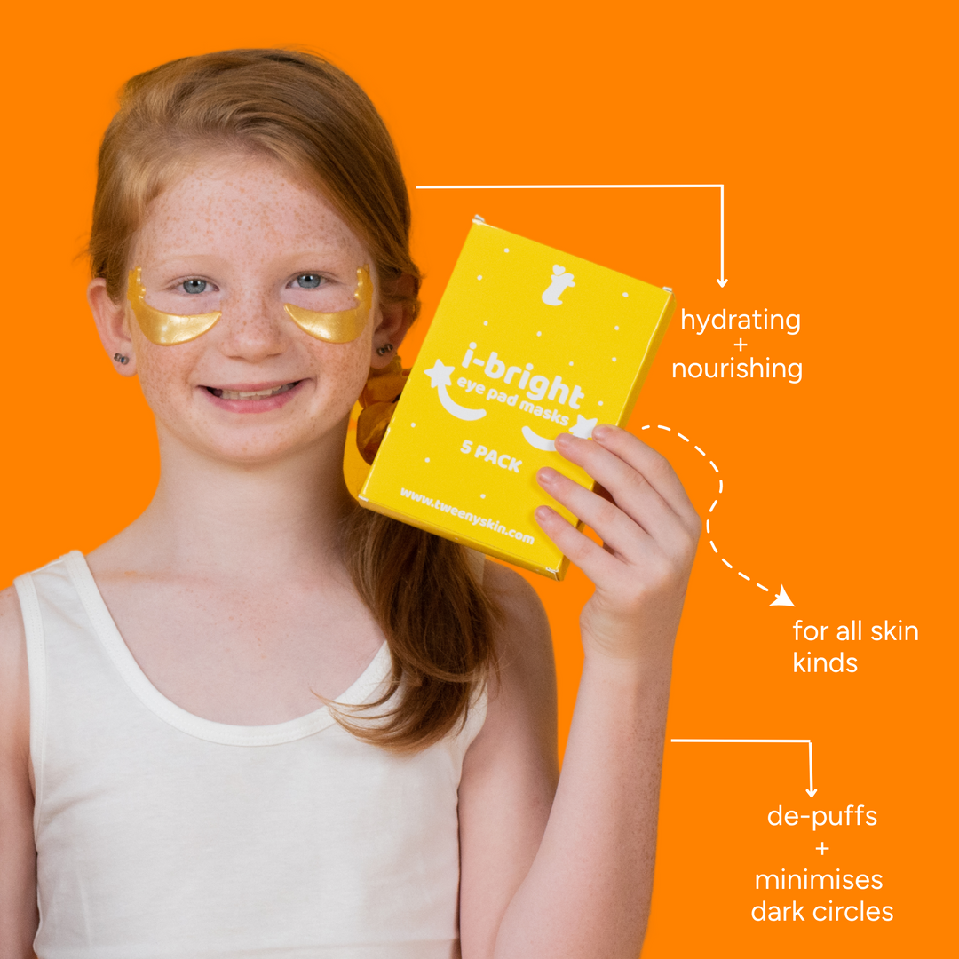 After cleansing your face apply an i-bright eye pad mask under the eye are and leave on for 20 mins. Remove and pat the remaining serum around they eye area.