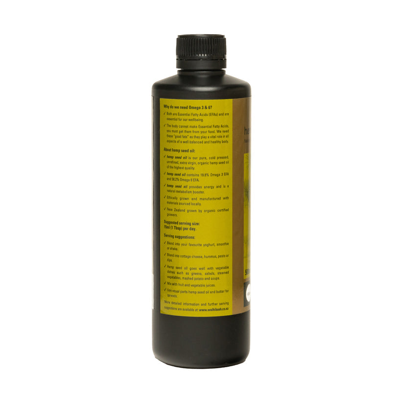 Our Waihi Bush Hemp Seed Oil has been cold pressed from certified organic hemp seeds grown in the majestic Mackenzie Country which lends a great flavour and superior nutritional profile to our Hemp Seed Oil.