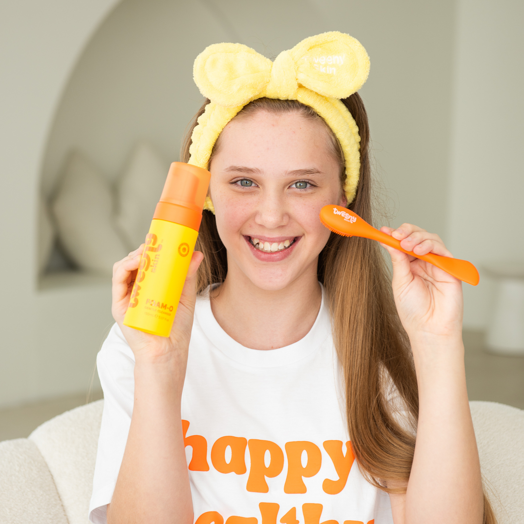 Use the buffer end of our applicator for a deep cleanse and light exfoliation by massaging in a light circular motion on your t-zone area after applying our FOAM-O Gentle Cleanser.